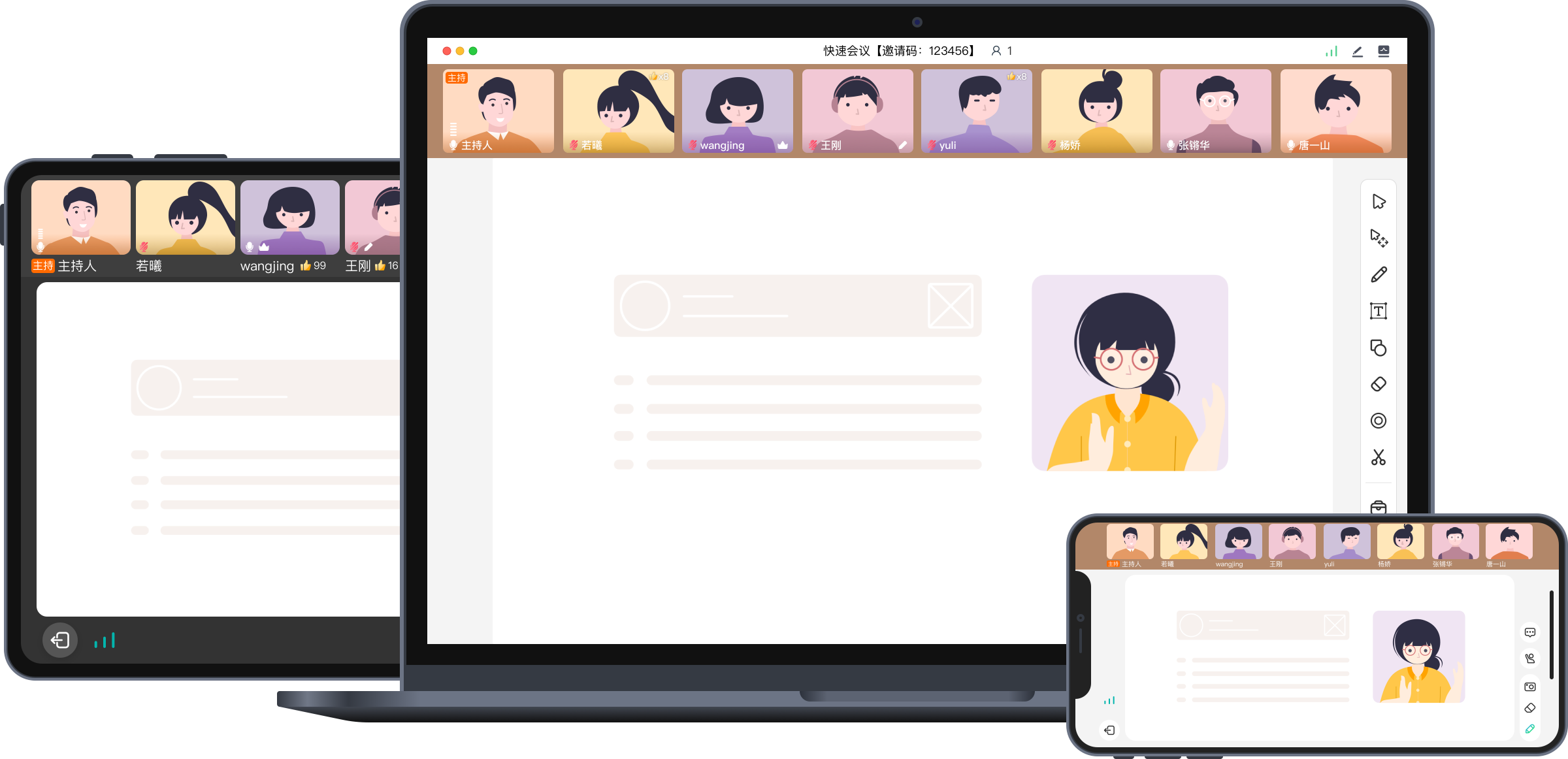 支持电脑端、手机端、平板端、网页端,多端同步互动